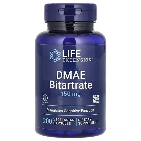 Life Extension, Битартрат ДМАЭ, 150 мг (200 капсул) - усиливает фокус и ясность мышления