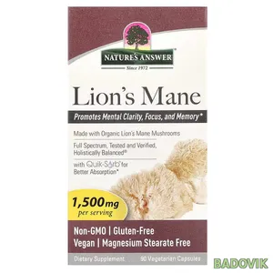 Nature's Answer, ежовик гребенчатый, 1500 мг (90 капсул) - поддерживает нейропластичность и долгосрочную когнитивку