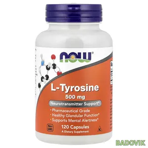 Now Foods, L-тирозин, 500 мг, 120 капсул - даёт драйв, мотивацию и устойчивость к нагрузке
